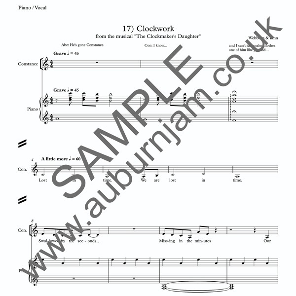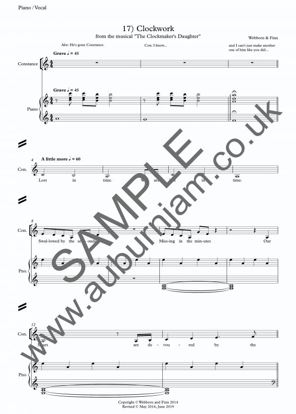 Buy PDF piano/vocal sheet music for “Clockwork” from new musical The Clockmaker’s Daughter  by Webborn & Finn.
