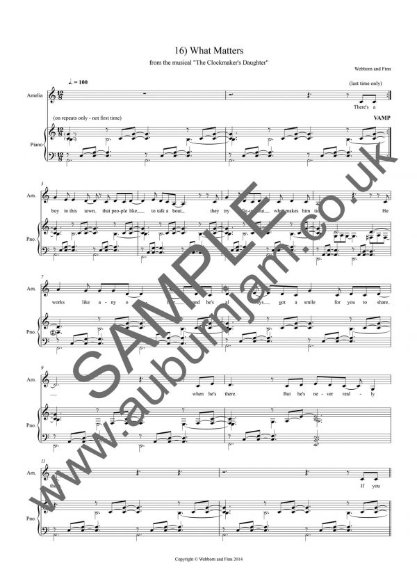 Buy PDF piano/vocal sheet music for “What Matters”, from the original version of The Clockmaker’s Daughter by Webborn & Finn.
